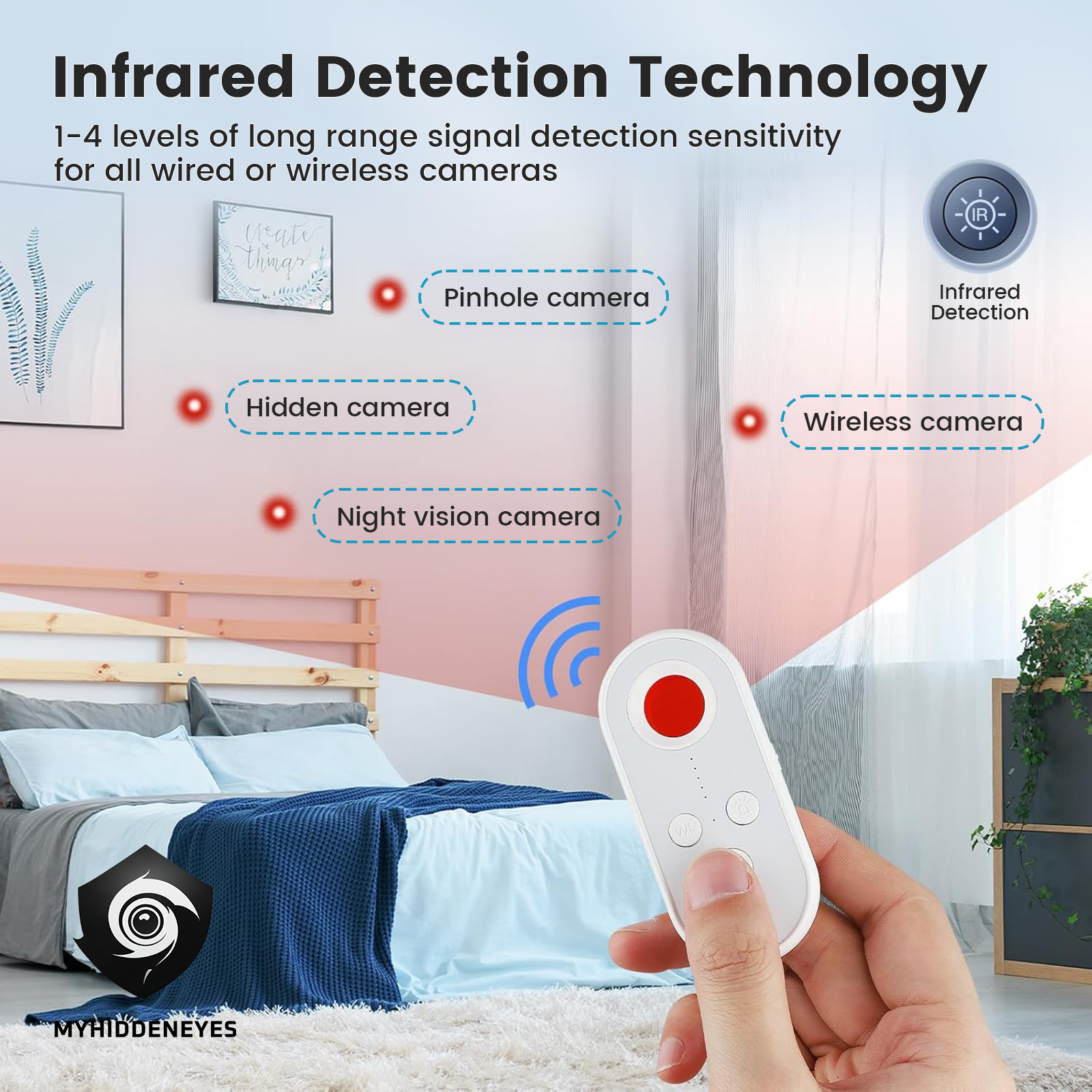 This device is produced by MyHiddenEyes – your hidden camera experts. At MyHiddenEyes, we offer a wide range of over 10 models of hidden cameras. With our expertise in the design and engineering of these devices, we understand exactly how they work—and how to detect them. This Anti-Spy Camera Detector has been rigorously tested against all our spy cam models, ensuring it performs effectively in a variety of scenarios and provides reliable security for every user.