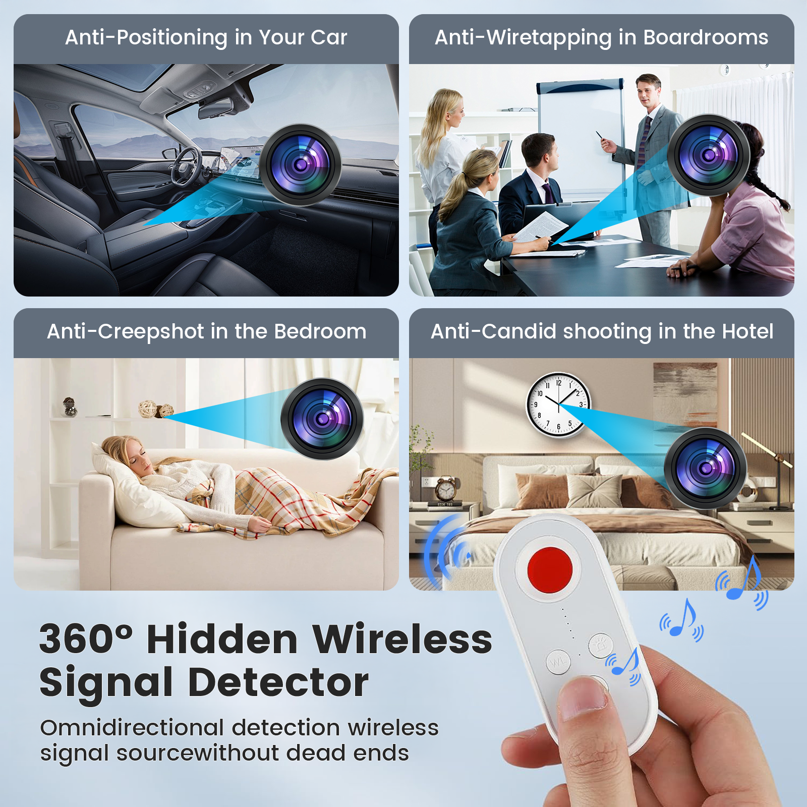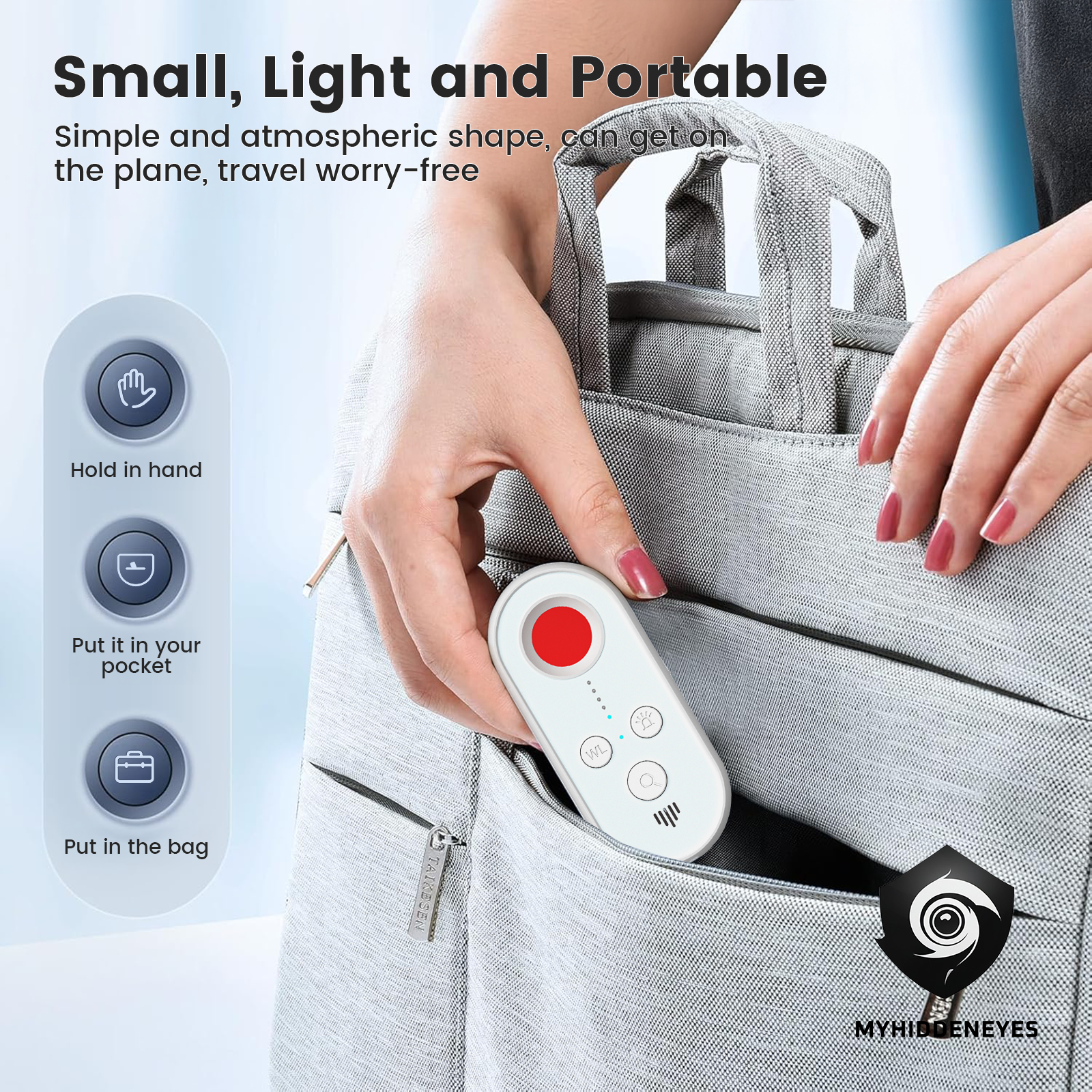Stay ahead of potential threats with the AI Anti-Spy Detector by MyHiddenEyes, designed to protect your privacy by detecting hidden cameras, wireless signals (like car GPS trackers), and triggering vibration or movement alarms. Whether you’re traveling, staying in a hotel, or just out in public, this device helps you stay aware of unwanted surveillance devices. With smart technology and reliable alerts, you can confidently monitor your surroundings for hidden risks.